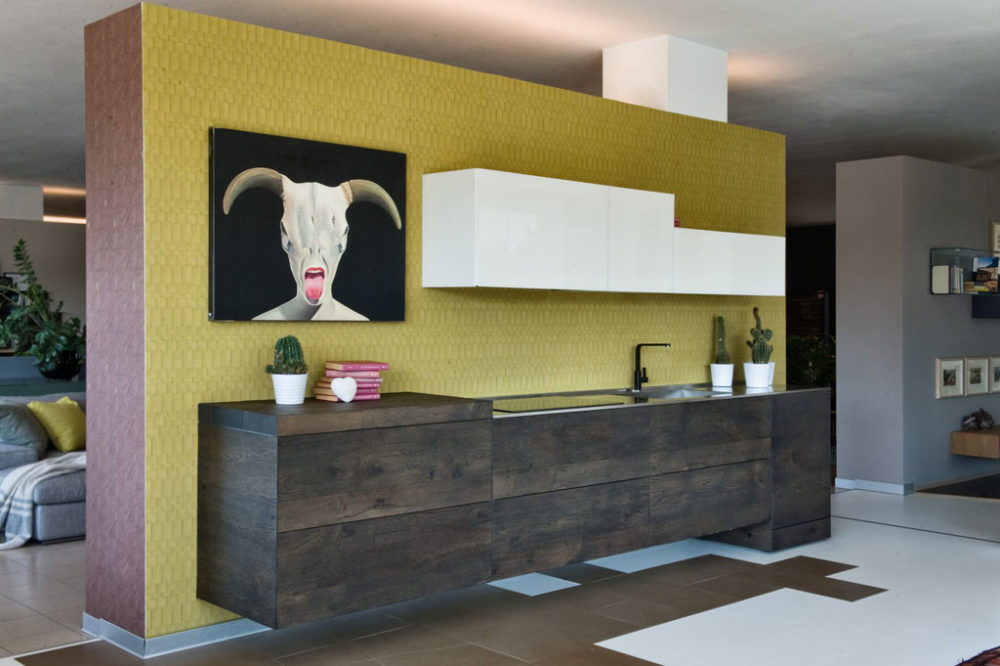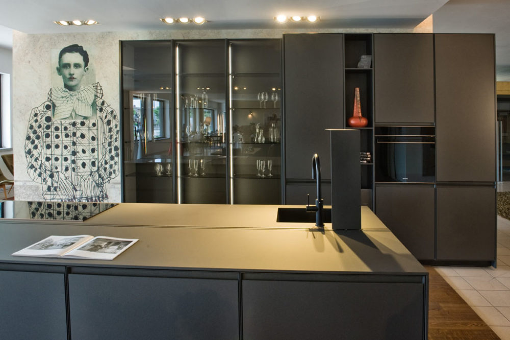 Al primo piano lo spazio cucina offre molteplici ambientazioni con le più recenti soluzioni estetiche e tecnologiche offerte dal mercato. E’ possibile scegliere tra diverse finiture: dal laminato al Fenix alla laccatura opaca e in poliestere, oltre a diversi tipi di piani di lavoro in pietra naturale o agglomerati come Okite, Quarella, Silestone, Technistone e Dekton.